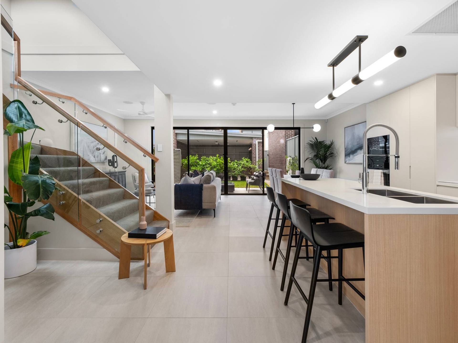 This brand new 4-bedroom, exclusive town home features open plan lounge and dining areas all flowing to the covered outdoor entertaining alfresco, separate family room, 2.5 bathrooms including ensuite, dedicated home office space, plus 2 upstairs living areas that can be used for relaxing or homework / home schooling and a magnificent custom glass balustrade open staircase.